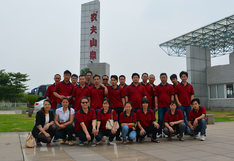 圖為2015年4月25號合影于河源市農(nóng)夫山泉生產(chǎn)基地,公司全體員工參觀了農(nóng)夫山泉生產(chǎn)車間。